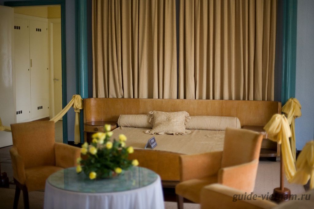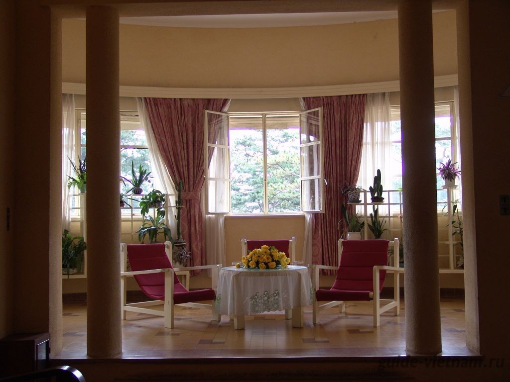 - В целом интерьер и обстановка во дворце не очень роскошные. Многие русскоговорящие туристы отмечают, что внутри летняя резиденция оформлена в духе СССР, и смотреть тут особо не на что. Тем не менее, посетить ее стоит хотя бы ради того, чтобы убедиться в скромности последнего императора и прикоснуться к вьетнамской истории. Ведь во дворце также хранятся и некоторые документы тех лет.